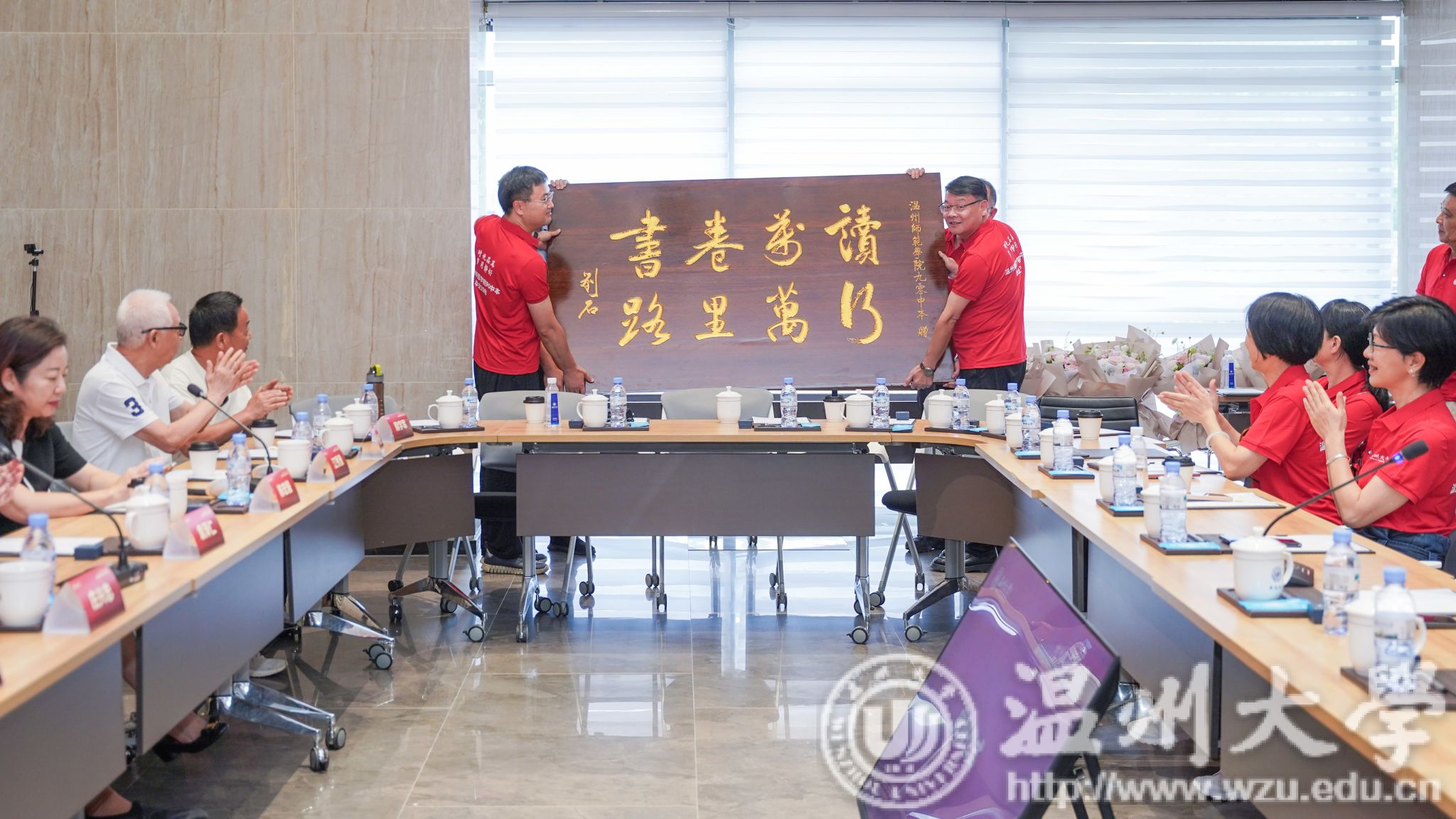 90中本向母校赠送礼物,牌匾上写有“读万卷书,行万里路”,寄托着90中本校友们对400全讯白菜网学子的殷切期望。