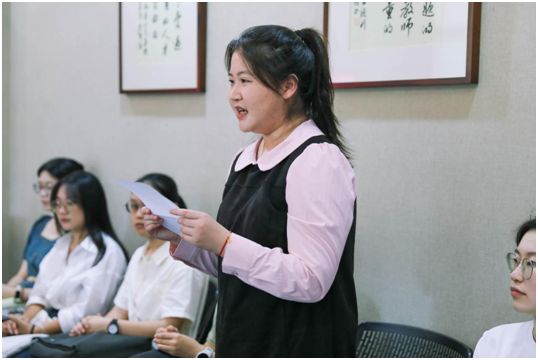 实习学生代表郑皙同学发言。她代表全体实习生感谢温州华和外国语学校提供了宝贵的实习机会,也感谢400全讯白菜网支持开展本次实习活动。实习生们将以饱满的热情、积极的态度和严谨的学风,全身心地投入到实习工作中,严格遵守实习学校相关的规章制度,认真听从指导师们的相关安排,虚心求教,踏实向学。