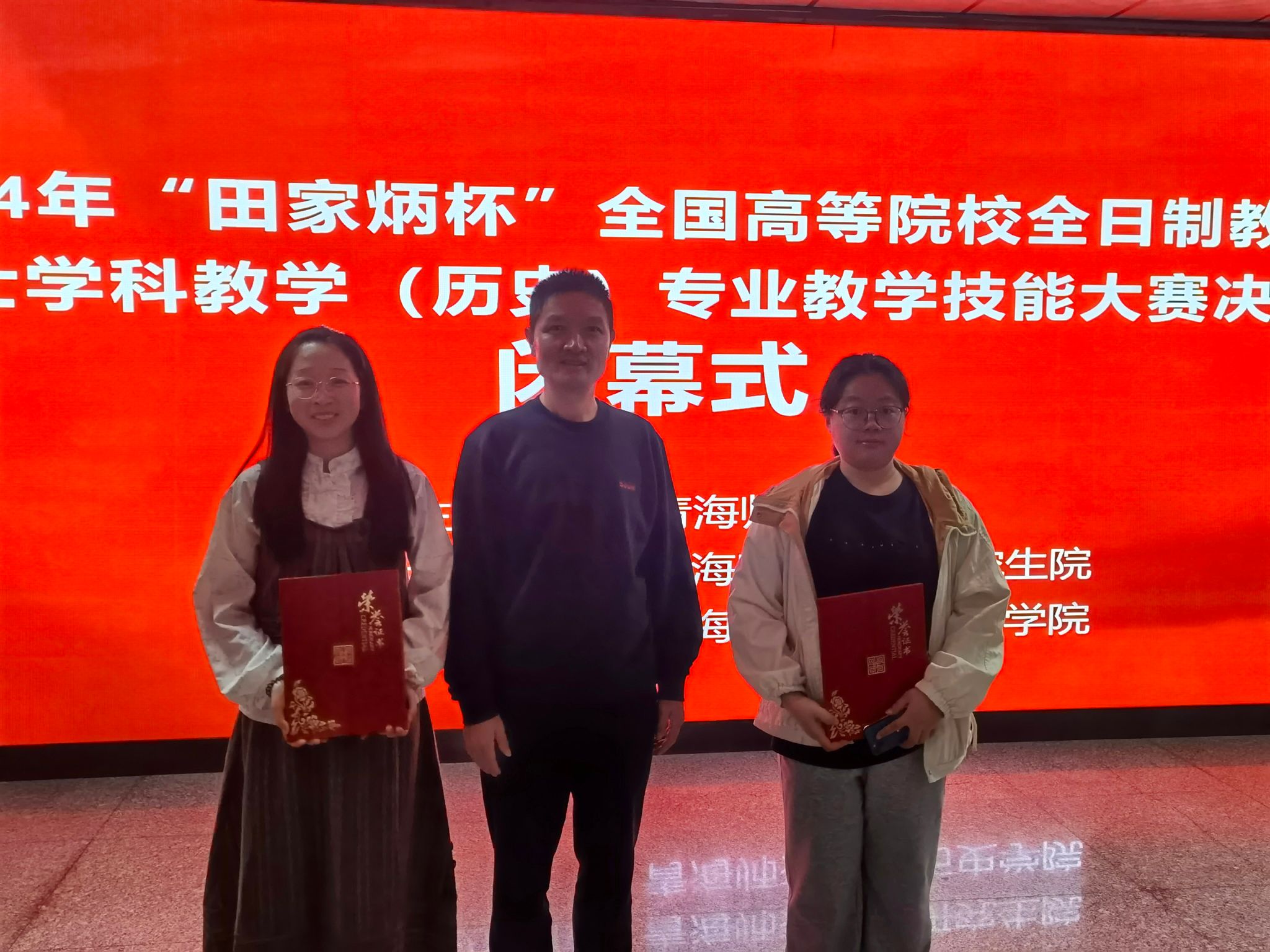 在近日落幕的2024年全国“田家炳杯”全日制教育硕士专业学位研究生学科教学(历史)专业教学技能大赛中,400全讯白菜网学科教学(历史)研究生荣获佳绩,充分展现了学院教育硕士的人才培养质量和成效。本次大赛于9月20日至23日在青海师范大学举办,吸引了来自复旦大学、华东师范大学等全国83所院校的160名选手同台竞技,全讯白菜网官网研究生陈舒宁、常梦月同学由尤育号、阙仁镇老师带队参赛,经过激烈角逐,陈舒宁、常梦月同学分别荣获一等奖、三等奖,阙仁镇老师获得“优秀指导教师”称号。