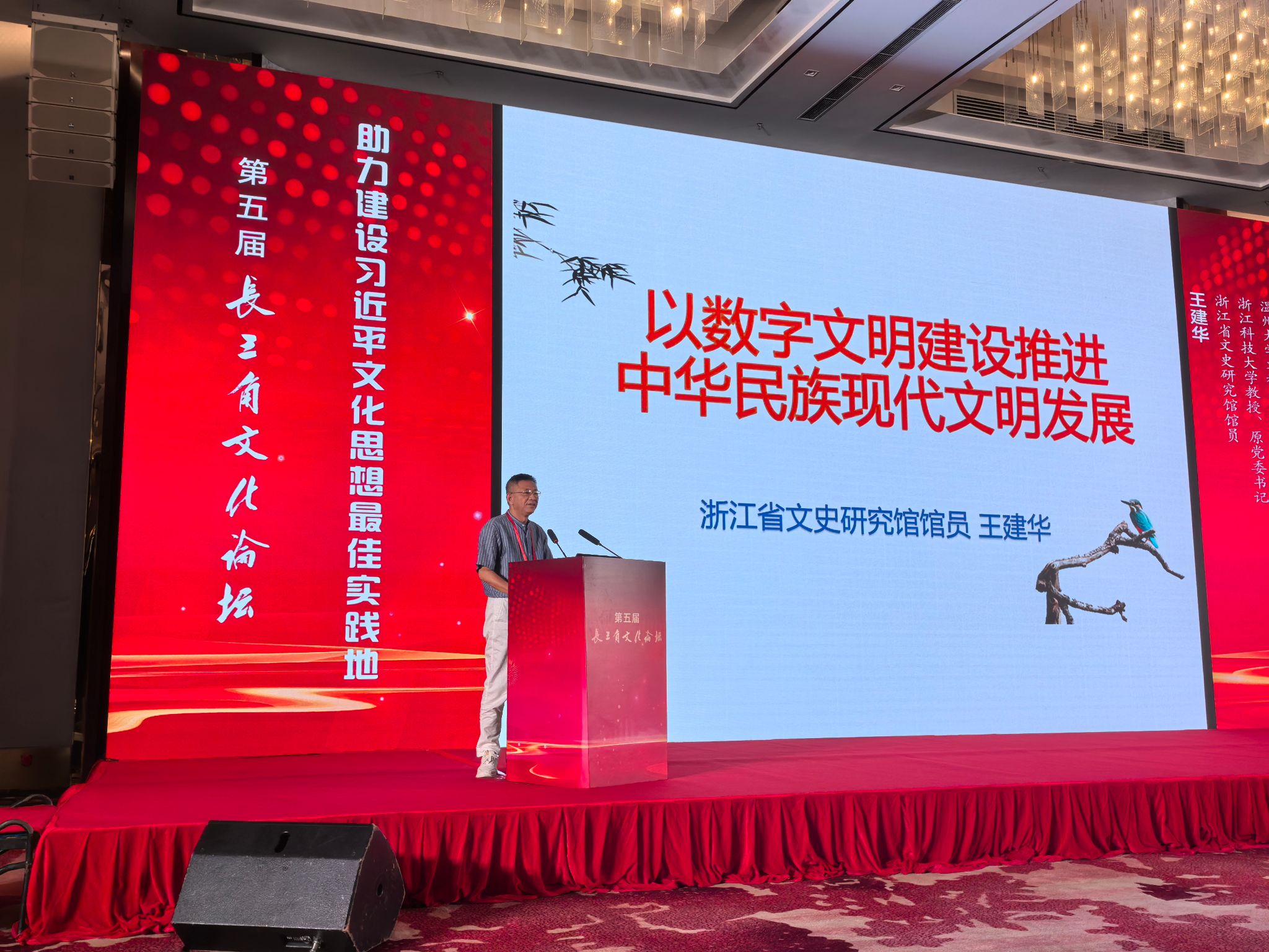 浙江省文史研究馆馆员、我校400全讯白菜网资深教授王建华老师应邀参加本次论坛,并在大会上作了《以数字文明建设推进中华民族现代文明发展》的主题演讲。王建华教授指出,数字文明是中华民族现代文明的重要组成部分,是具有时代特色的中华文明现代的新形态。数字文明建设将有力推进中华民族现代文明的发展。长期以来,浙江在数字化、数字文明建设方面成绩斐然,为探索中华民族现代文明做出了积极贡献。我们应立足于浙江实际,着眼数字文明建设的实际推进,展开不同维度的三个方面探索:首先是建设优秀的数字文明环境;其次是将数字新质生产力与精神文明融合;最后是着力提升网络主体的文明修养。王建华教授的报告引起了在座专家学者的极大兴趣和一致好评。