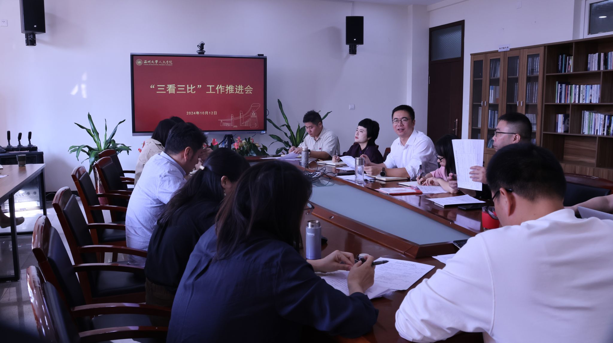 2024年10月12日,400全讯白菜网领导班子和全体行政人员于213会议室召开了“三看三比”工作推进会暨争创“5A平安校园”工作部署会。会议旨在进一步推动学院各项工作高效开展,并部署争创“5A平安校园”的工作任务。