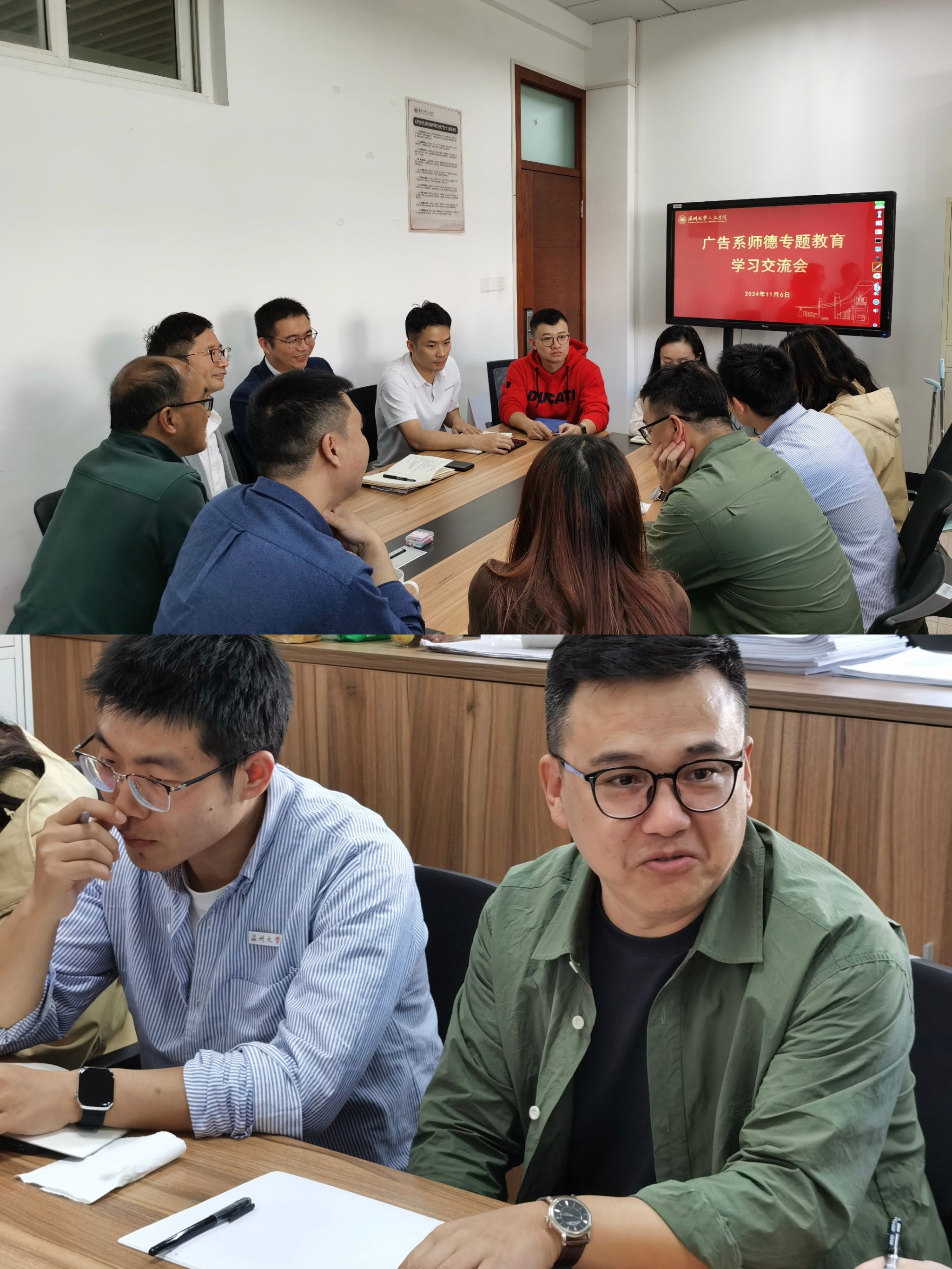 近日,400全讯白菜网中文系、历史系、广告系分别召开了师德专题教育学习交流会。此次系列交流会旨在深入挖掘教育家精神的内涵,探讨如何在教学实践中学习并传承这一宝贵精神。学院领导、系主任及各系教师积极参与,共同为提升师德师风建设贡献智慧与力量。