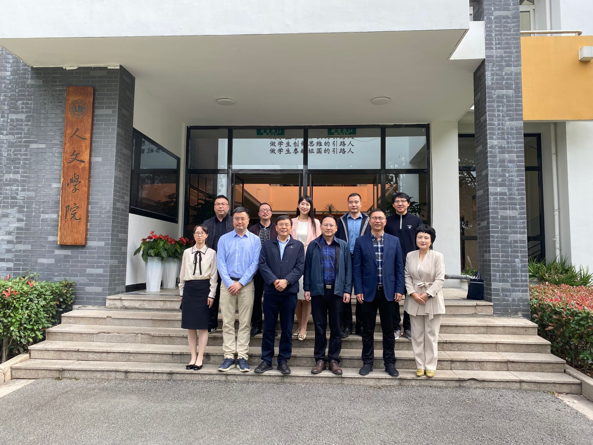 11月11日上午,西南大学文学院王本朝院长一行来全讯白菜网官网访问交流。院长兼图书馆馆长孙良好、院党委书记江秀景、副院长陈源源、院党委副书记黄玮,副院长张真、陈鸿超及学工办副主任刘炳林参加了交流座谈。