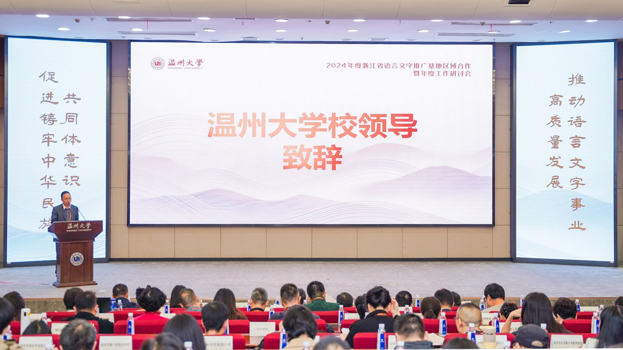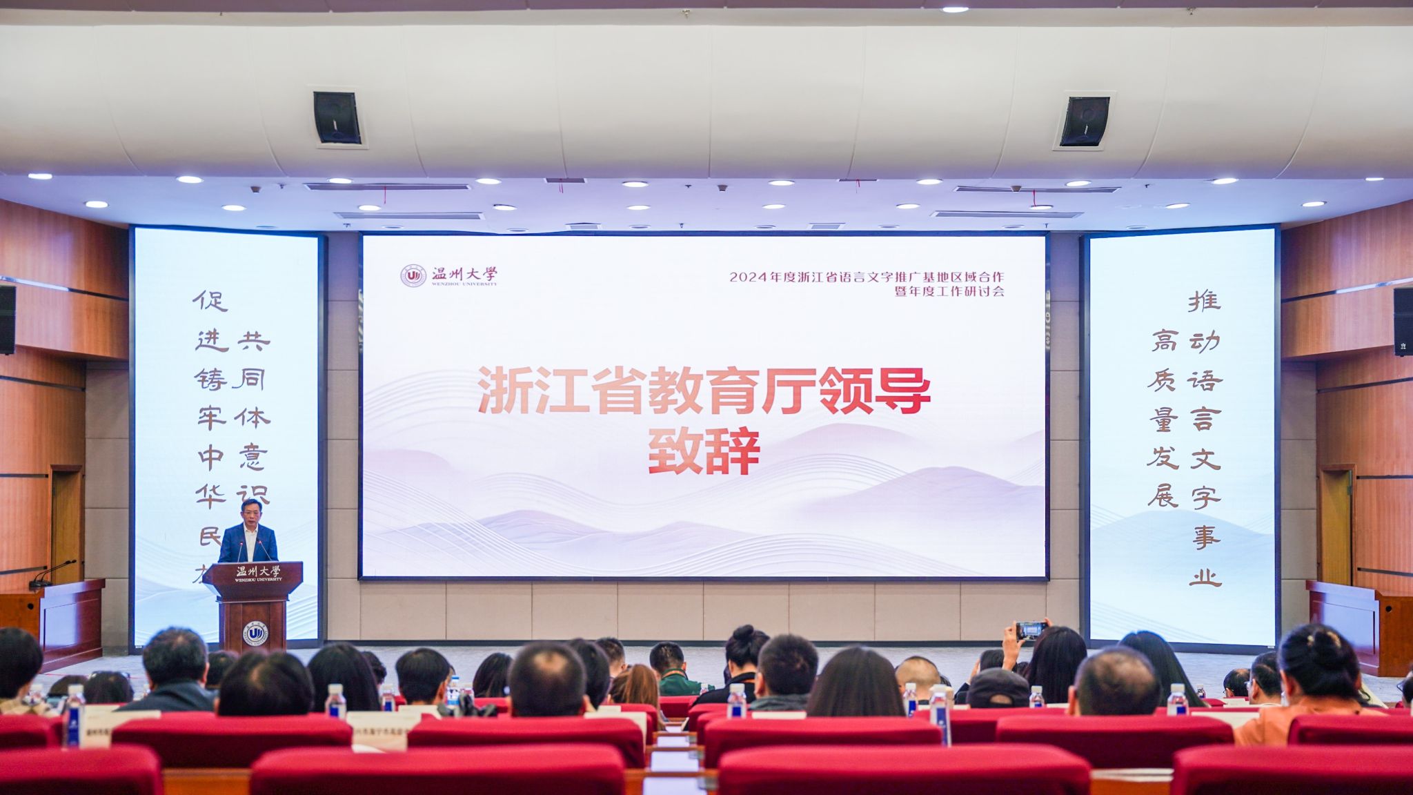 2024年11月21日,2024 年浙江省语言文字推广基地区域合作暨年度工作研讨会在全讯白菜网论坛官网举行。本次会议由浙江省教育厅主办,国家语言文字推广基地(全讯白菜网论坛官网)承办。浙江省教育厅二级巡视员、教材管理处(语管处)处长、省语委办主任朱鸿飞,61家省级基地负责人和各地教育局(语委办)100余人参加研讨会。