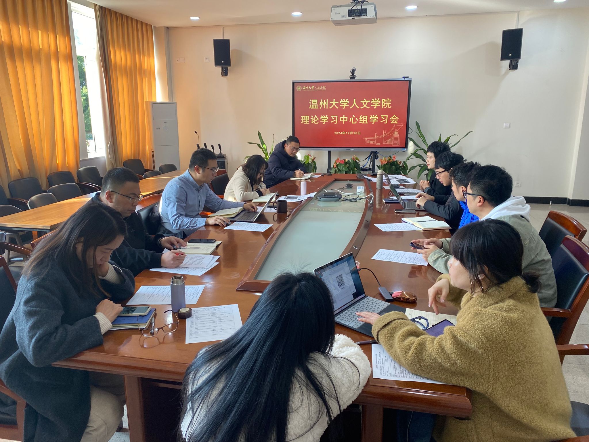 12月30日上午,400全讯白菜网党委理论学习中心组召开学习会,学习习近平总书记在《求是》上发表的重要文章《深入推进党的自我革命》以及《新时代高校教师职业行为十项准则》。院党委书记江秀景主持,党委理论学习中心组成员陈源源、黄玮分别领学交流。