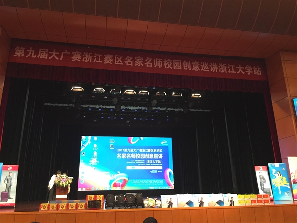 当天下午13:30,第九届“大广赛”名家名师创意巡讲(浙江大学站)活动在浙江大学紫金港校区小剧场举行。赵颖、姜晨两位老师,带领14、15级共70多位同学参加了本次活动。中国高等教育学会广告专业委员会副理事长、中央电视台广告策略顾问金定海教授,作了主题为《好玩好玩好玩——创意就是玩出来的》的讲座。另外,“大广赛”命题企业代表详细地解析了企业命题,让学生们有机会了解命题企业的真实需求,为后阶段的备赛指明了方向。