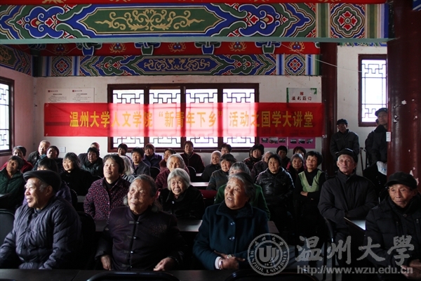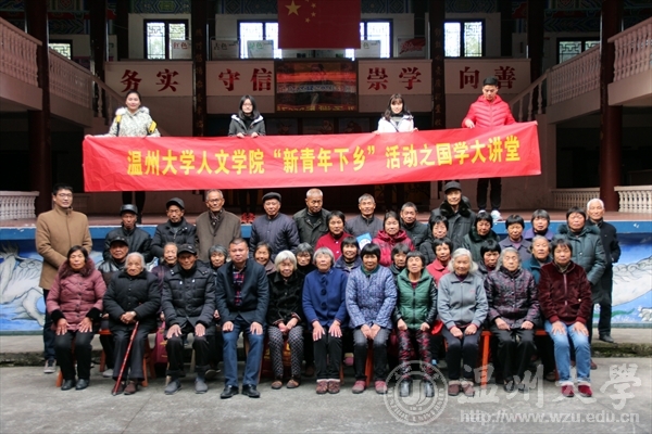 为了深入推进“新青年下乡”活动常态化,促进高校青年服务农村、服务基层的作用。12月28日下午,全讯白菜网官网组织研究生开展了“新青年下乡”活动,并在乐清市芙蓉镇筋竹村文化礼堂举办了以国学为主题的讲座,主讲人为全讯白菜网官网2016级研究生付婕和张珣珣。此次活动受到了当地村民的热烈欢迎。