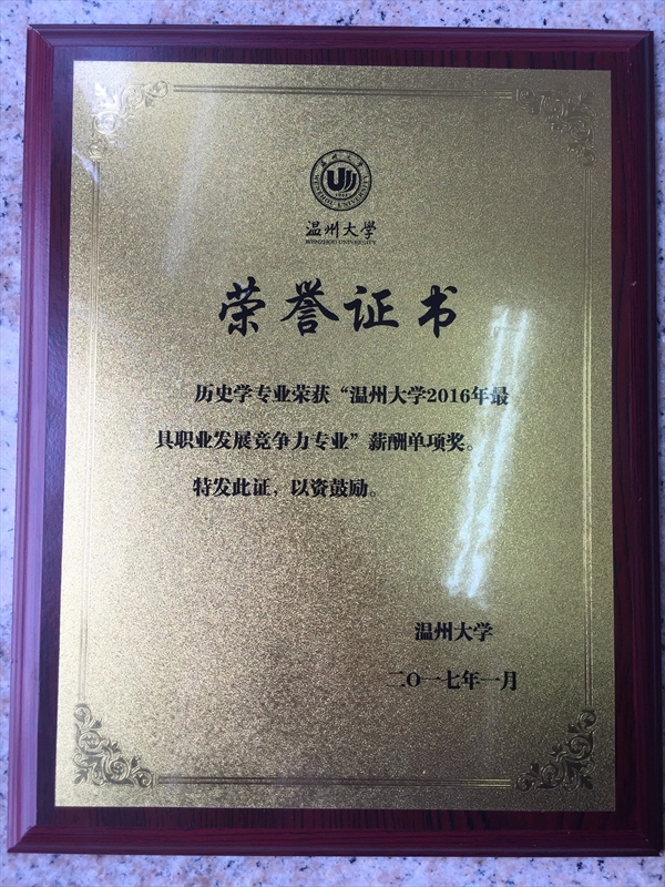 全讯白菜网官网历史学专业荣获“全讯白菜网论坛官网2016年最具职业发展竞争力专业”薪酬单项奖称号,奖励五万元。