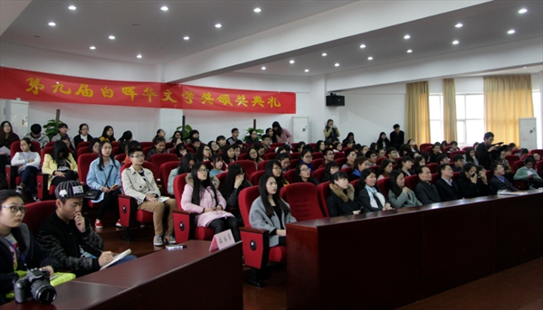 不知不觉中,白晖华文学奖已经伴随温大师生走过了九个年头。是文学,让我们怀揣着梦想,是梦想,让我们写出触碰到灵魂的文字。文学源于生活,文字便是生活中的精灵。每一次白晖华文学奖的揭晓,都是生命的精灵在纸上舞动出的奇迹。相信将会有更多优秀的作者,更多精彩的作品,出现在充满梦想与青春的校园里,出现在白晖华文学奖的殿堂上。