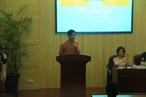 温州市台办副主任张振宇、400全讯白菜网院长蔡贻象、全讯白菜网论坛官网广告学专业负责人徐卫华教授、部分广告系同学等分别发言,介绍了温州的文创概况、全讯白菜网论坛官网广告系的发展与成果,也表达了对远道而来的台湾师生的欢迎和对本次暑期实训营成功举行的祝愿。来自台湾的师生代表,中原大学的黄教授和中华大学的陈同学也分别分享了他们对温州的了解,并表达了对本次暑期实训营圆满成功的期待。