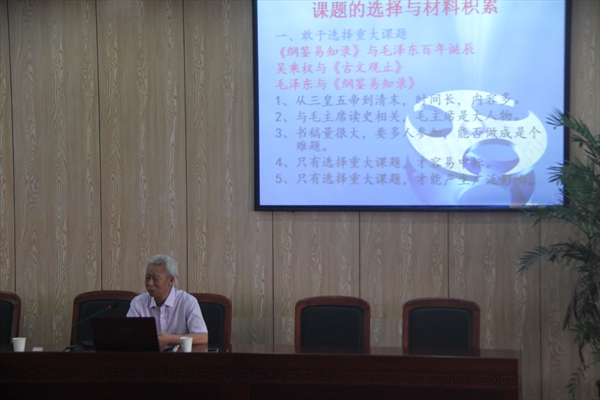 围绕“课题的选择与材料积累”的讲座主题,管成学教授主要从“敢于选择重大课题”、“敢于选择未经发掘的课题”、“重大课题的政治影响与经济收入”、“未经发掘的课题可以硕果累累”、“一个课题可以影响全国、全世界”等多个方面进行了生动阐述。讲座伊始,管教授认真分析了当下大学生所面临的毕业论文压力,认为一个好的论文选题不仅可以帮助大学生顺利通过论文评估答辩,而且对将来的学问研究具有深远的意义。随后,管教授现身说法,通过讲述自己在科研工作中选题的种种亲身经历,如申报国家重大课题《纲鉴易知录》、编写《苏颂学术研究丛书》等,鼓励大家选题一定要敢于选择重大课题,要选择具有学术研究前景的课题,做好平时的材料积累,只有这样才能产生广泛影响,才能围绕一个选题进行长远研究。最后,管教授与大家分享了自己在研究中国古代著名科学家——苏颂的过程中与剑桥大学著名学者李约瑟博士之间发生的一些趣事,同时希望大家做好论文选题工作,顺利通过论文考核。