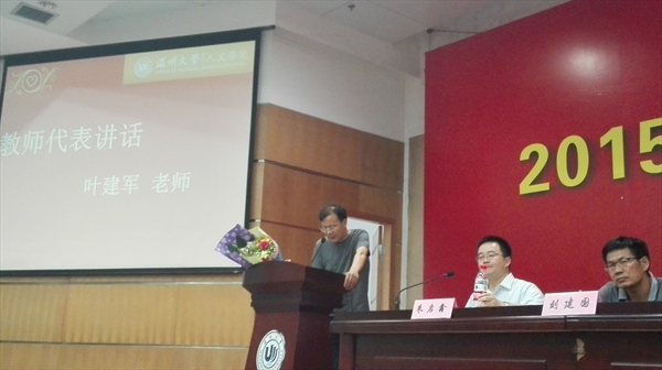 典礼从欣赏短片《在温大人文的日子》开始,营造了浓浓的毕业情。伴随全体奏唱国歌,典礼开始了庄严的时刻。蔡贻象院长首先致辞,他表达对同学们顺利毕业的祝贺以及未来工作生活的美好祝愿,他说,毕业的性质更多时候是叙事小说和戏剧剧本,充满着无奈、绝然和必须的面对。他也希望同学们以后能经常回学校看看。优秀毕业生潘立川同学代表全体同学表达了对大学生活的留恋和对400全讯白菜网的惜别之情,也感谢学院提供各种平台,让同学们收获了专业的知识、处事的智慧和生活的热情。叶建军老师则代表毕业班班主任发言,他祝福学生们走上工作岗位后一切顺利,开启人生精彩新篇章。典礼上,吴静书记宣读了全讯白菜网官网省优、校优、院优荣誉获得者名单、考研优秀奖名单、毕业论文优秀奖名单,并为毕业生代表颁发证书。最后,学院领导为各班级校友联络员颁发了聘书。典礼上学院领导为同学们准备了特制礼物,各毕业班也向母校赠送了感恩纪念品,学生代表为老师献花,师生情谊在双向互动的过程中不断升温。