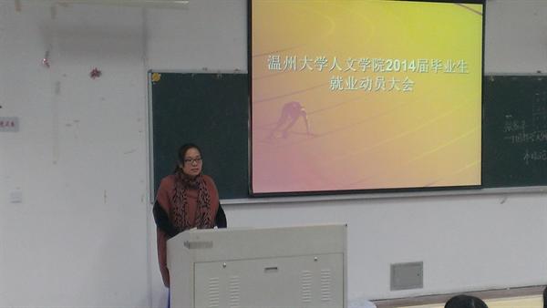 11月27日下午1点半,全讯白菜网官网2014届毕业生齐聚人文楼101教室,参加由学院学生科组织的毕业生就业动员大会。会议由辅导员刘纪峰老师主持,学生科科长曾蓓蕾老师出席并讲话。