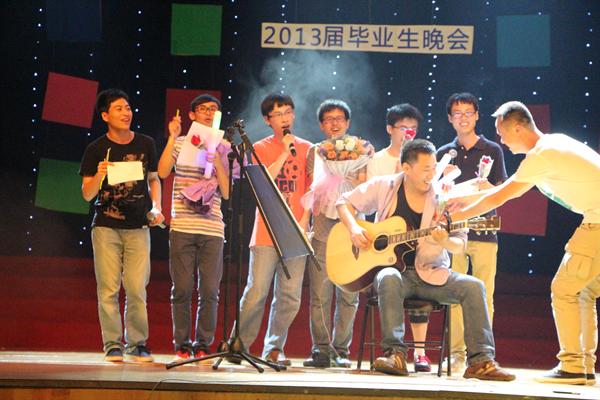晚会一开始是学院团委学生会带来的影子舞,灯光交错,时光晃动,幕布上演绎着大学里相逢和别离的故事,熟悉的图书馆,天鹅湖,熟悉的场景,四年的欢声笑语聚首分离一一呈现,开场舞结束后,晚会迎来第一篇章:“在温大人文的日子且歌且诗——我遇见你,像半月牙儿的青涩。”当C8宿管大叔抱着吉他带着400全讯白菜网306寝室孩子们上台时,全场轰动,掌声雷鸣,四年的集体生活,宿管叔叔阿姨像亲人一样照看着我们的起居,如今正是作别的时候,一曲《滴答》充满了爱与温情!11本3班的学生独具匠心为大家演艺《在人文的日子》,学院的一幕幕重新回到我们身边,怀念着日日不曾离去的一草一木。第二篇章:“青春不打烊。”所以我们高声颂着海子的诗歌,长鼓咚咚响起来,所以跳起肚皮舞,在我的歌声里,告诉你但愿人长久。不知不觉,你们的光阴匆忙间走成了故事。篇章穿插的环节是“圆梦”,主持人现场抽学号,将写满毕业心愿的气球扎破与大家分享毕业生亲手写下的愿望卡,并且尽力帮助他们完成一次毕业小小的心愿。第三篇章:今天晚上,很好的月光,风吹麦浪,但却要在《张三的歌》后跟你说《再见》,再回首与你道一声,珍重!栖风文学社带来的话剧《今天晚上,很好的月光》真情演艺大学四年理想爱情与现实的矛盾,舞蹈,歌声,话剧,今天晚上,声声的祝福里充满了惜别的感伤,有眼泪,有交错的灯光,有笑容,有漫天飞舞的回忆,有即将毕业的你们,也有送别的我们,这一刻,请让时光放慢脚步。