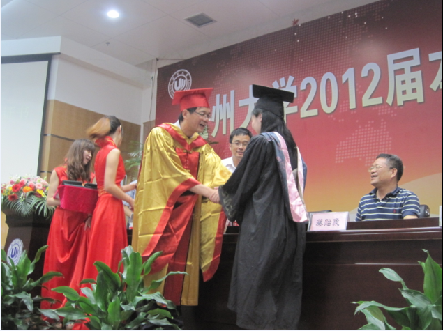 6月11日8点,400全讯白菜网2012届本科生毕业典礼在北校信息楼报告厅隆重举行。400全讯白菜网院长蔡贻象、党总支书记吴静、副院长刘建国、孙良好,办公室主任马声威、学生科科长曾蓓蕾、毕业班班主任等出席了典礼。