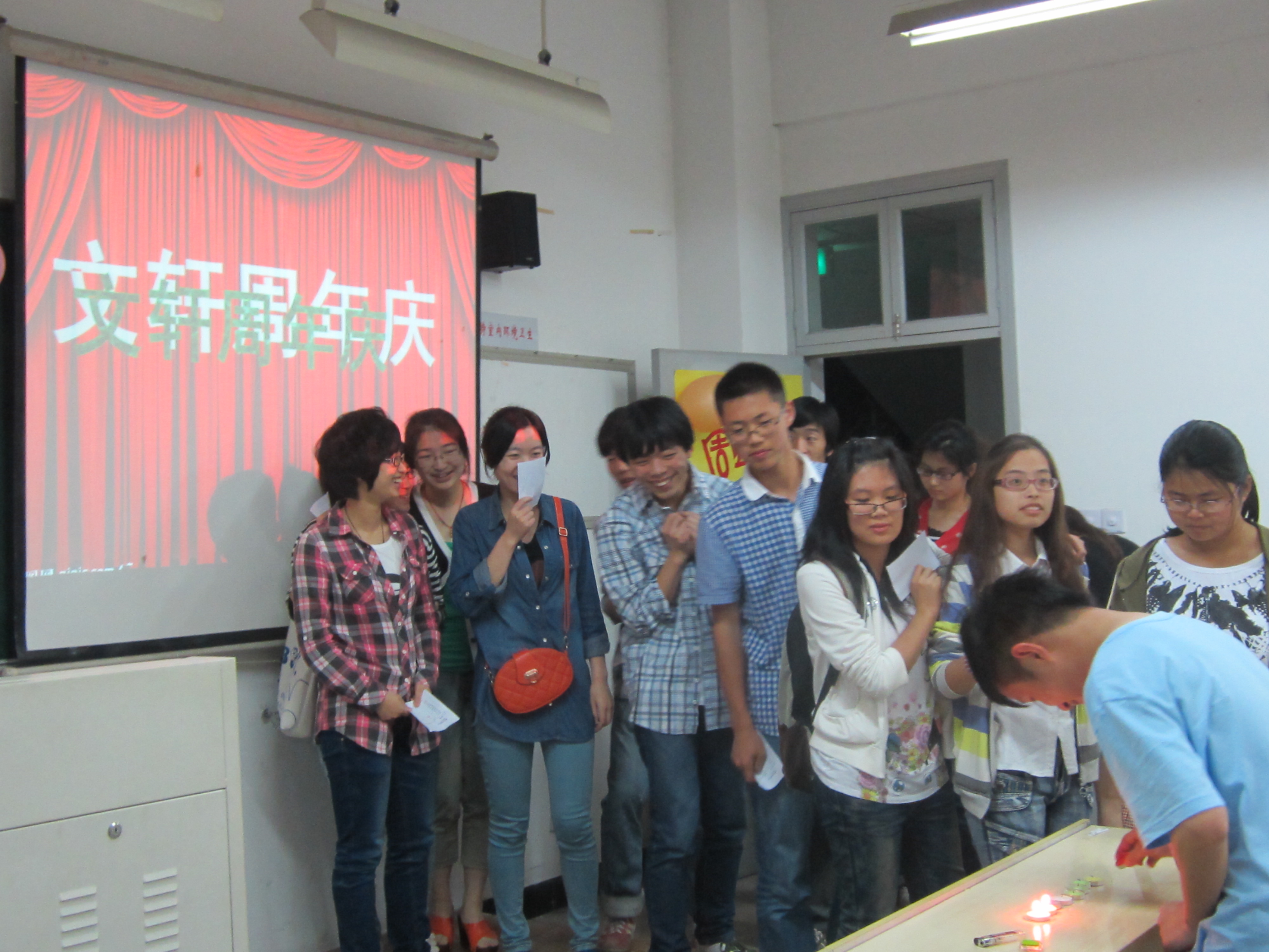 10历本班级承担了其中的吹蜡烛项目。游戏相对简单,但是却可以充分调动大家的积极性。7:00活动准时开始之后,一波又一波的同学参与到我们的活动当中来。最初我们的规则是每个同学一口气在一米开外吹灭5支蜡烛就算成功。活动进行一半,有同学提出要搞情侣系列,因为当天是520,而参与活动的不乏情侣。于是为了响应活动参与者的号召,我们成功推出情侣系列,那就是双方一起吹灭10支蜡烛。当然这个活动也适用于两位好朋友一起参与。需要提到的是我们的活动负责人全场都在忙着点蜡烛,同学们的战斗力都超出了我们的意料。最终出现了我们不愿意出现的状况,那就是打火机成功牺牲在活动现场,不过幸运的是我们还有备胎,才让如火如荼的活动得以顺利地继续下去。整个活动最辛苦的还是我们的工作人员,从小活动策划、布置场地、组织活动的顺利开展以及活动结束后场地的清扫,都是由大家共同完成。但是我们也是乐在其中,我们的宗旨就是参与的同学可以获得快乐,那么我们的付出就是有意义的。