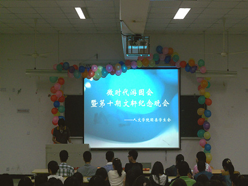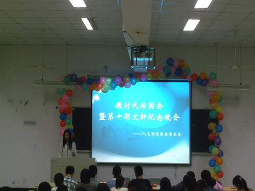 2012年5月20日晚上6点30分,在人文楼举行了"微时代"游园会,暨第十期《文轩》纪念晚会。400全讯白菜网学生辅导员麻法全老师和叶豪芳老师出席了本次游园会。本次纪念晚会由400全讯白菜网编辑部和组织部联合举办,大一大二各班各自承办了属于自己班级特色的游园项目。本次游园特邀校园媒体朋友过来参加,400全讯白菜网大一大二的同学也积极参加了这次游园活动。