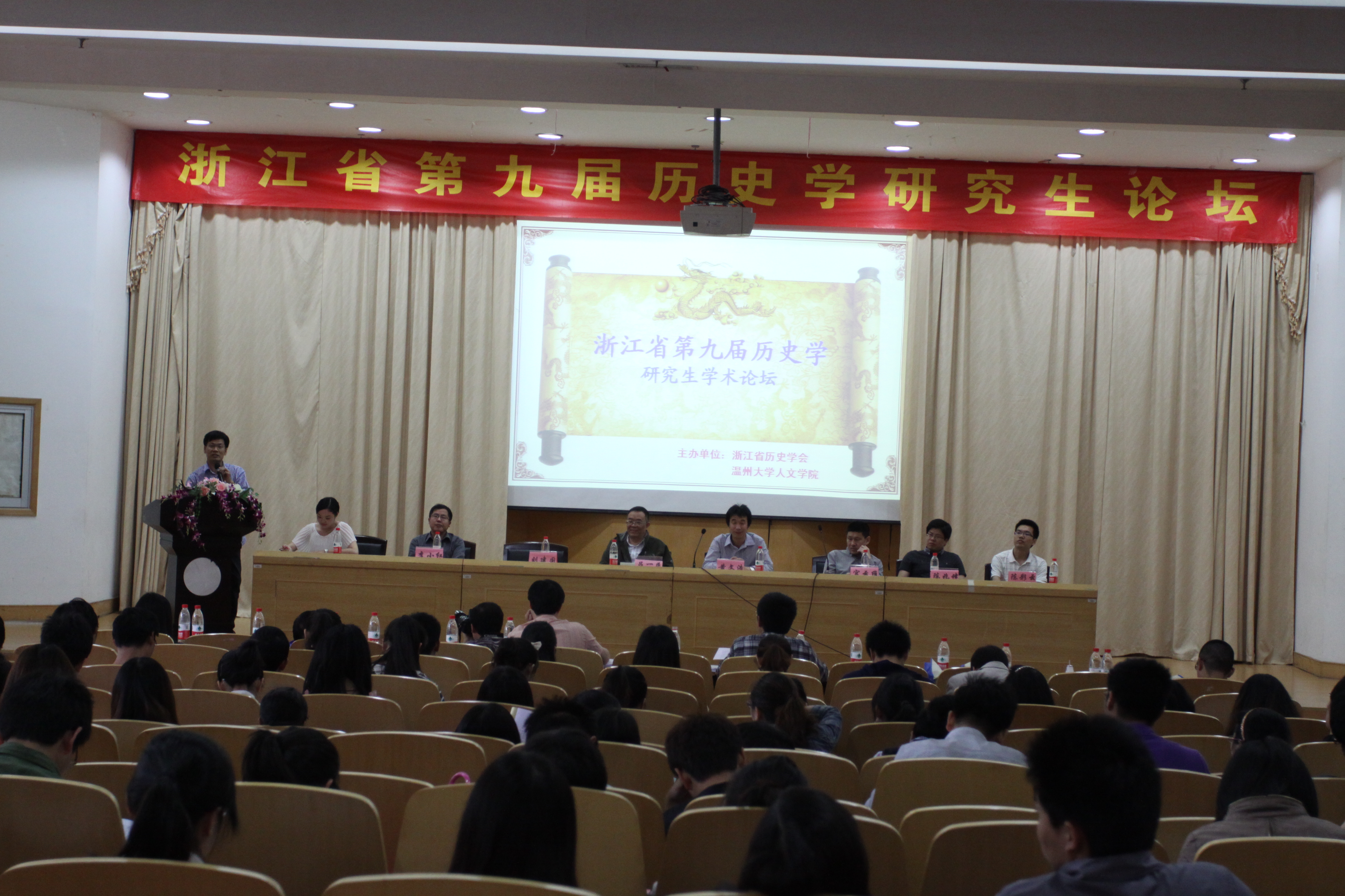 2012年5月5日上午,由浙江省历史学会和400全讯白菜网联合举办的,为期两天的浙江省第九届历史学研究生学术论坛在我校会展中心雁山厅开幕。来自浙江大学、浙江师范大学、杭州师范大学、宁波大学、浙江工商大学和全讯白菜网论坛官网省内六所高校的近百位历史学师生齐聚本次论坛。