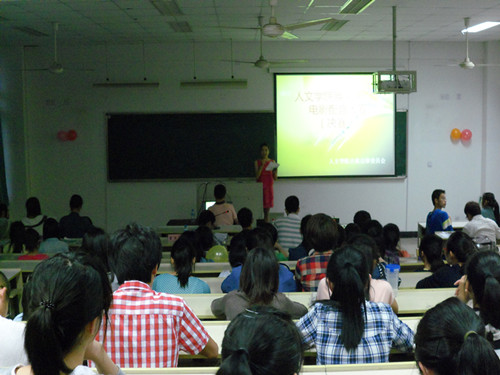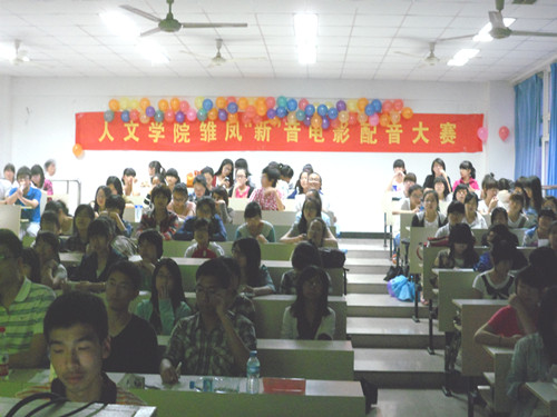 2012年5月15日晚上6点30分,在人文楼301教室举办了400全讯白菜网雏凤"新"音寝室配音大赛决赛。本次大赛特别邀请了400全讯白菜网学生科杨东永老师,刘继峰老师,校学生会副主席陈辉同学担任评委,400全讯白菜网学生辅导员叶豪芳老师,学生会副主席蒋文晨同学以特邀嘉宾身份出现。学院大一大二的同学纷纷 以高昂的热情参加了本次比赛。