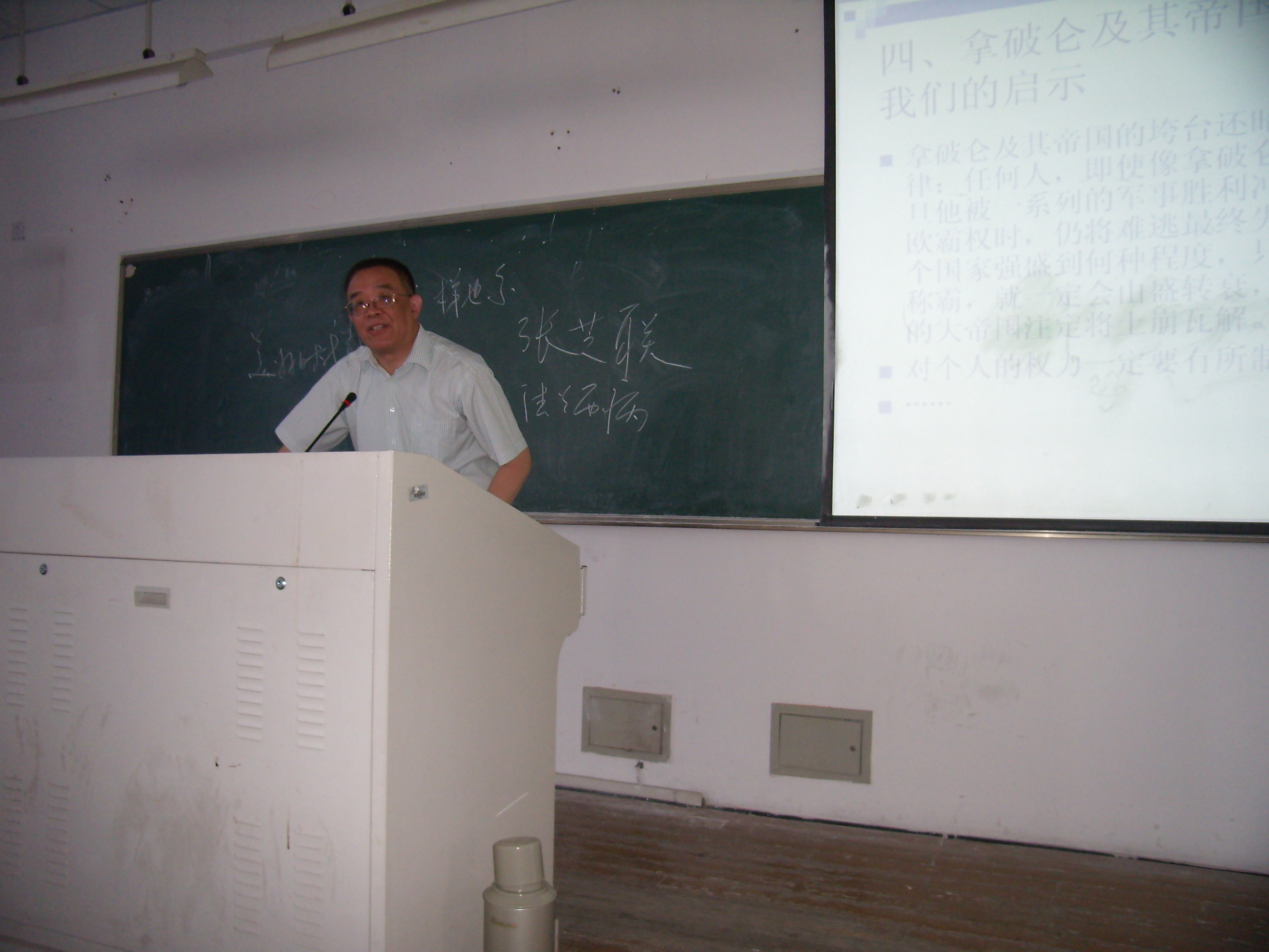 5月7日上午8时,400全讯白菜网301大教室早已挤满了人,等待聆听浙江大学400全讯白菜网副院长、历史系博士生导师吕一民教授的讲座《拿破仑的崛起与法兰西第一帝国的兴衰漫谈》。吕教授在法国史研究方面有很高的造诣,曾出版过《大国通史-法国通史》、《一九一八--一九三九年的法国》、《世界著名首相传》、《世界著名记者传》、《法兰西的兴衰》、《20世纪法国知识分子的历程》等专著。此外还翻译了《知识分子的鸦片》、《卡尔•波普》、《自由之声--19世纪法国公共知识界大观》、《公民的加冕礼:法国普选史 》、《海德格尔》、《耶稣会士中国书简集:中国回忆录》等书籍。郑春生、蔡瑞霞、陈勇等老师也聆听了讲座。