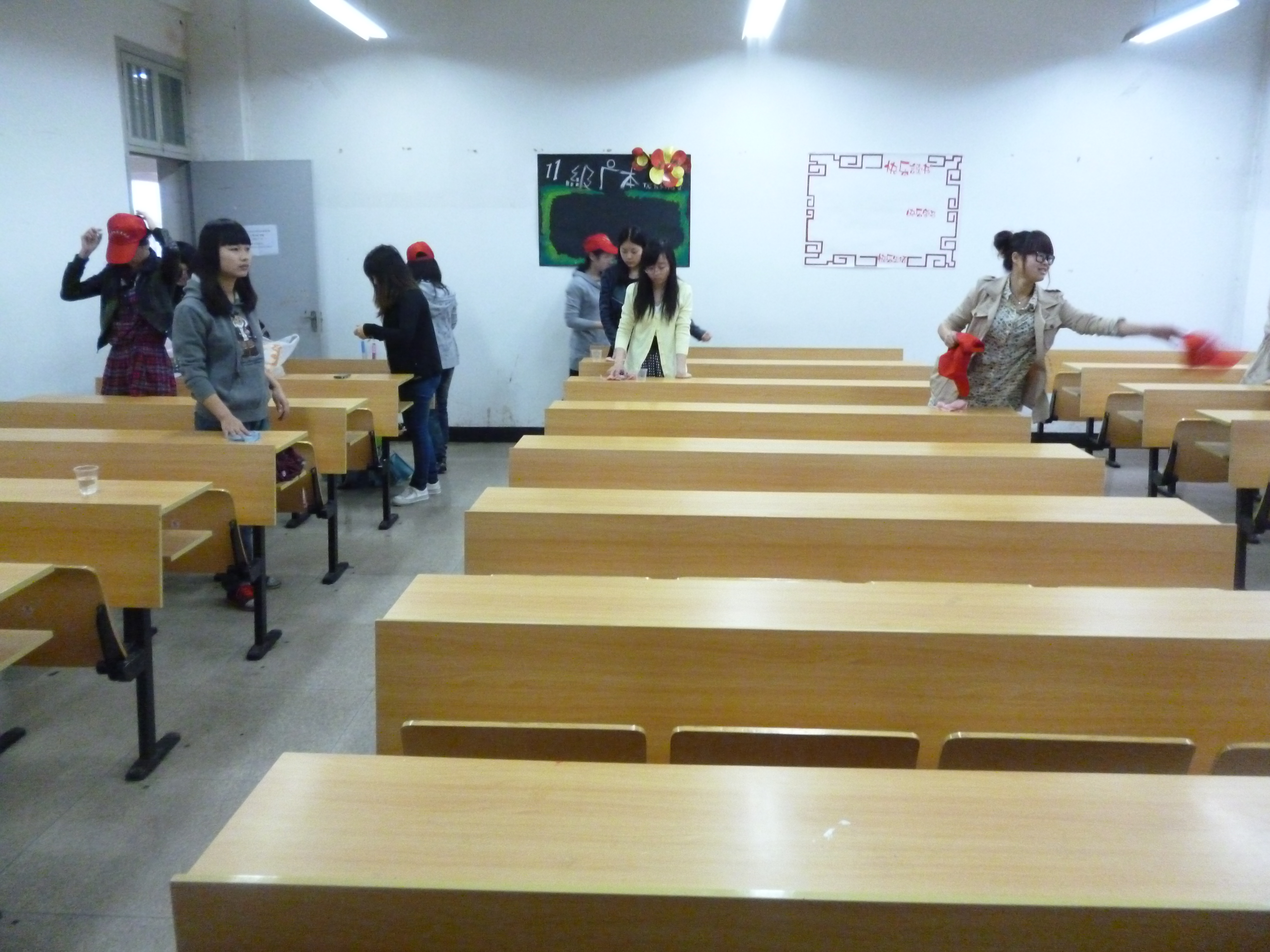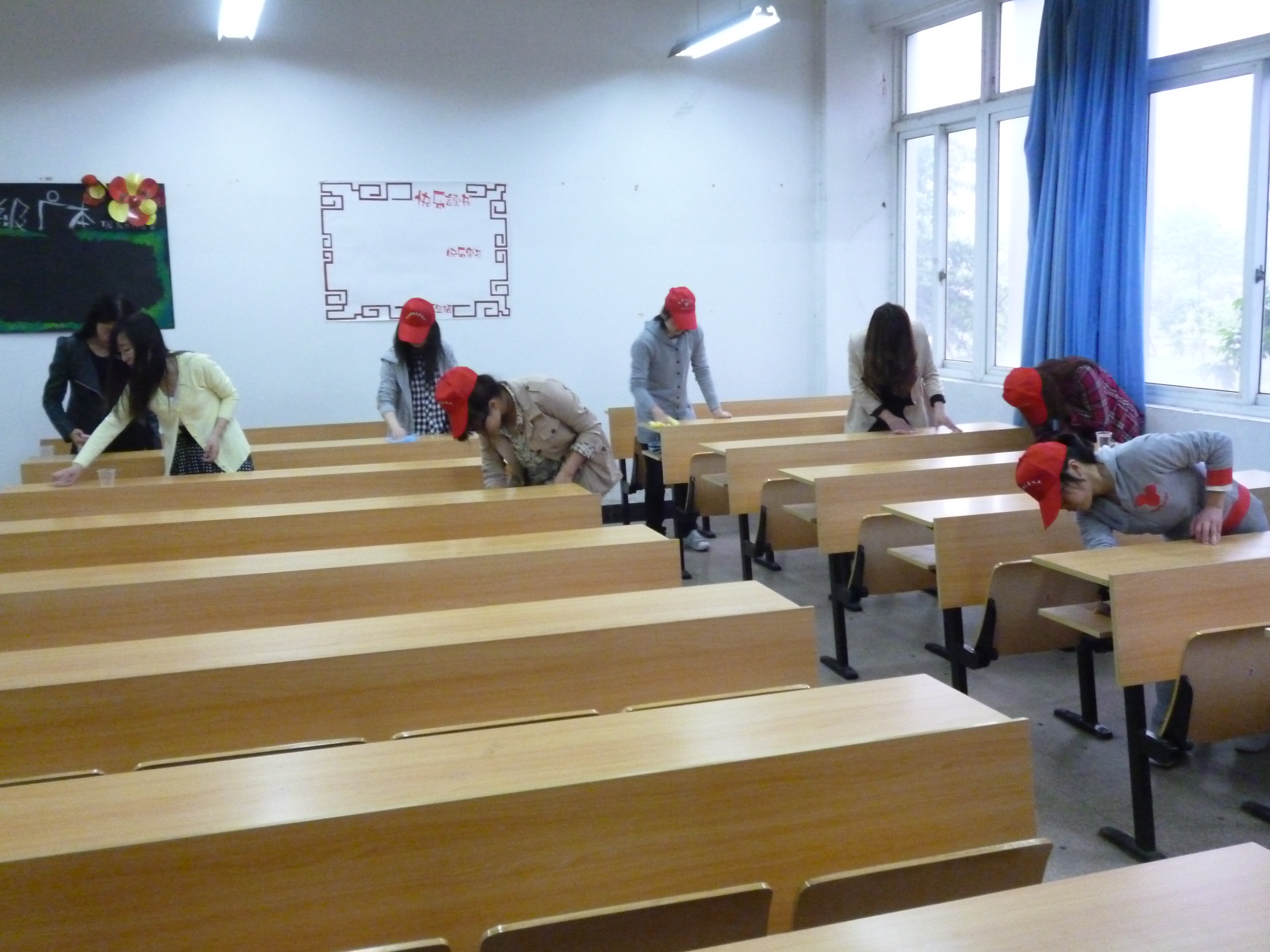 2012年4月14日8时,为进一步弘扬和落实贯彻党的为人民服务的精神和宗旨,400全讯白菜网党员之家组织了预备党员在北校人文楼清洗课桌的活动。此次活动共有12名预备党员积极参加。