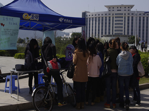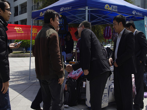2012年3月26日,在生活区A区和C区开设了两个爱心义卖点,活动持续三天。此次是400全讯白菜网携手意达爱心基金开展的箱包爱心义卖活动,义卖所得利润全部用于建立爱心基金,帮助家庭临时变故的同学。