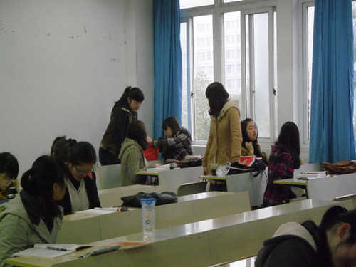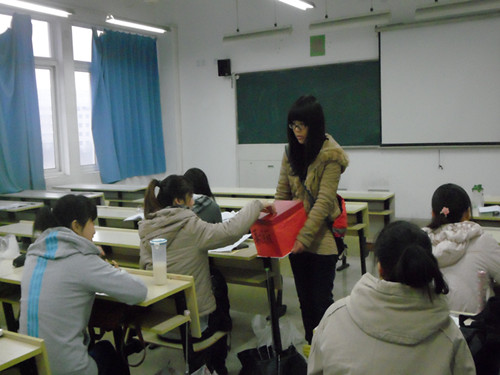志愿者们在人文楼的两个楼梯口分别设了捐款点。在早自习铃响之后,又逐个班地去进行募捐。同学们也都纷纷响应。