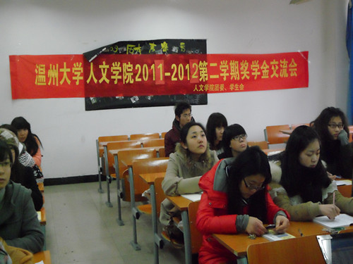 在2012年2月17日下午三点半,在北1-105教室,全讯白菜网官网召开了奖学金交流会,邀请了09至11级的三个级段各班的班长和学委来参加。
