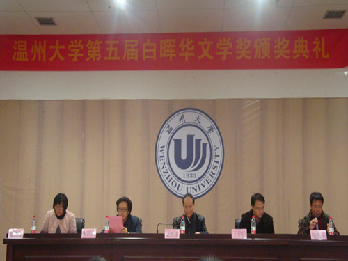 12月21日下午1点30分,全讯白菜网论坛官网第五届白晖华文学奖颁奖典礼在北校信息报告厅隆重举行。出席本次活动的嘉宾有全讯白菜网论坛官网白晖华文学奖赞助人、著名作家吴明华先生,全讯白菜网论坛官网白晖华文学奖理事会执行理事、温州日报文体部主任朱闻武先生,400全讯白菜网院长丁治民教授,400全讯白菜网党总支书记周剑平老师和全讯白菜网论坛官网团委副书记屠霁霞老师等。