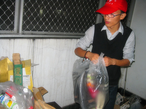 2011年11月18日,全讯白菜网论坛官网人文思源青年志愿者协会在温大C区学生宿舍继续进行废旧物品回收的常规活动。同学们都很热情地配合志愿者们的活动。
