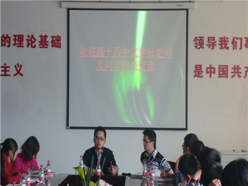 11月3日,温州第十四中学与温大三大媒体的文学沙龙在大学生活动中心B309隆重举行。温州第十四中学团委书记戴陈仪,奋飞文学社指导老师和全体社员以及温大青年,400全讯白菜网文轩编辑部,栖风文学社三大温大媒体共同出席了本次会议。
