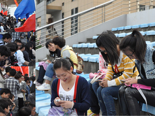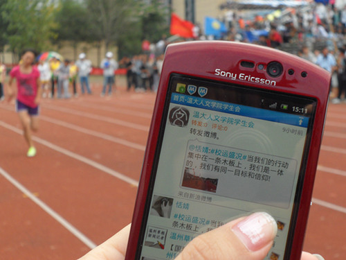 当我们把镜头聚焦到全讯白菜网论坛官网第三十四届校园运动会的时候,我们会发现许多拇指一族活跃在运动会的各个角落,他们用自己的手机拍下运动会的精彩瞬间并立即上传到微博上,及时有效地和大家分享火热赛事。