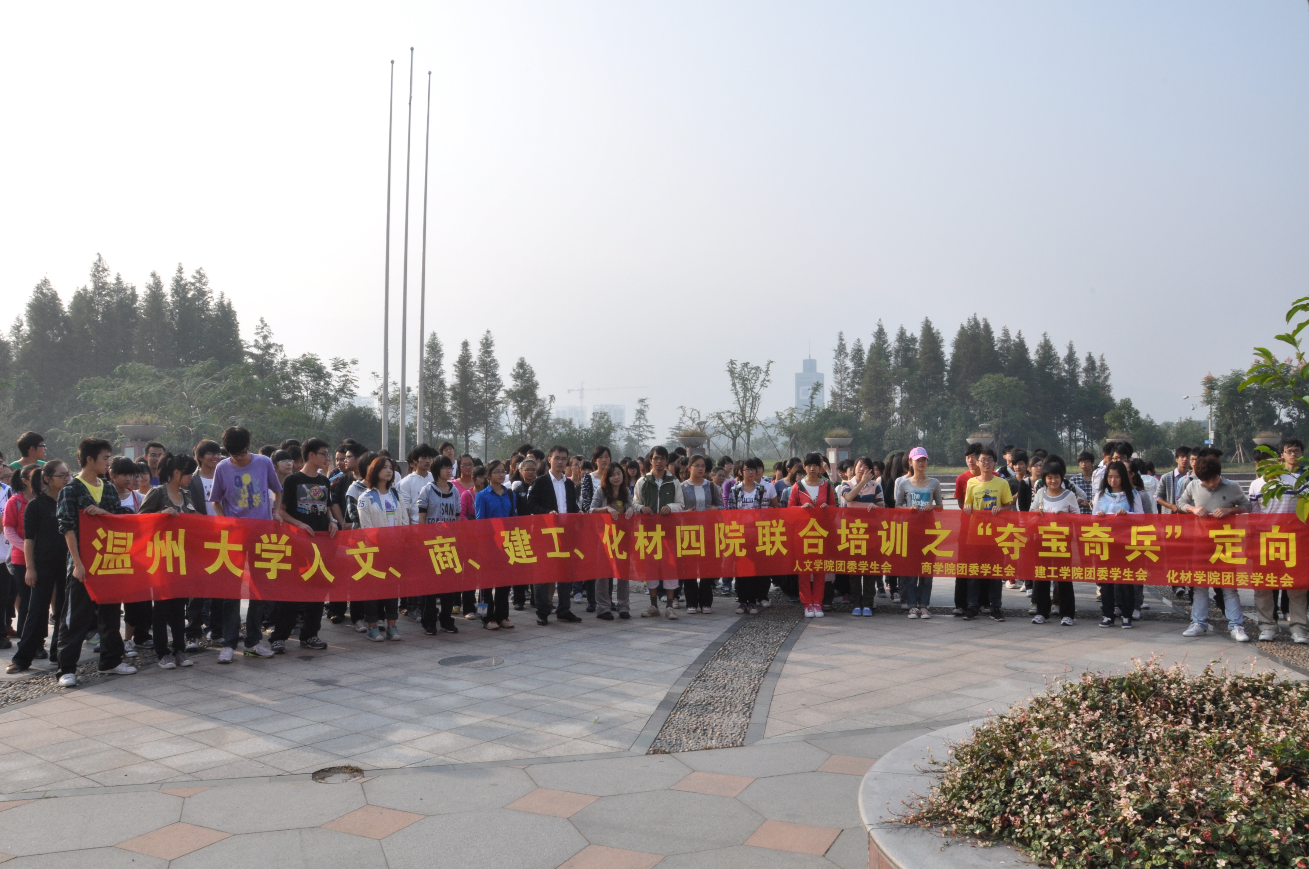 2011年10月22日上午8点,由人文、商、建工、化材四院组织的团干联合培训之“夺宝奇兵”定向运动比赛在大学生活动中心盛大开幕。参加本次开幕的有400全讯白菜网团委麻法全老师,商学院团委学生会李丽老师,化材学院团委田明伟老师。