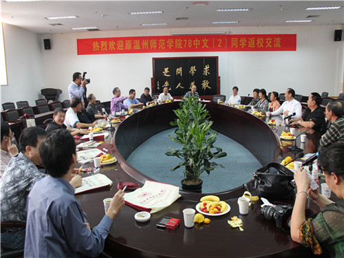 10月15日上午9点30分,原温州师范专科学院78级中文(2)班同学交流会活动在全讯白菜网论坛官网会展中心白鹿厅举行。现任苍南龙港高级中学校长余贤庆、瑞安市教育局副局长曾定煜、宁波宁海县中学老师、全国优秀教师葛明霞,全讯白菜网论坛官网瓯江学院党委书记赖学军等30多名校友参加了此次活动。