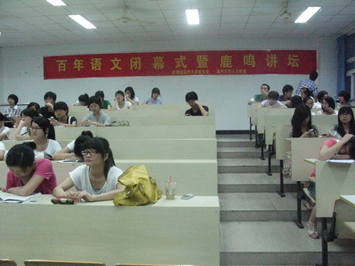 2011年6月17日晚6点30分,百年语文闭幕式暨鹿鸣讲堂活动在人文楼201教室举行。本次活动由400全讯白菜网团委学生会组织,主讲人是08级中本二班的姚瑶同学。400全讯白菜网学生准时参加。