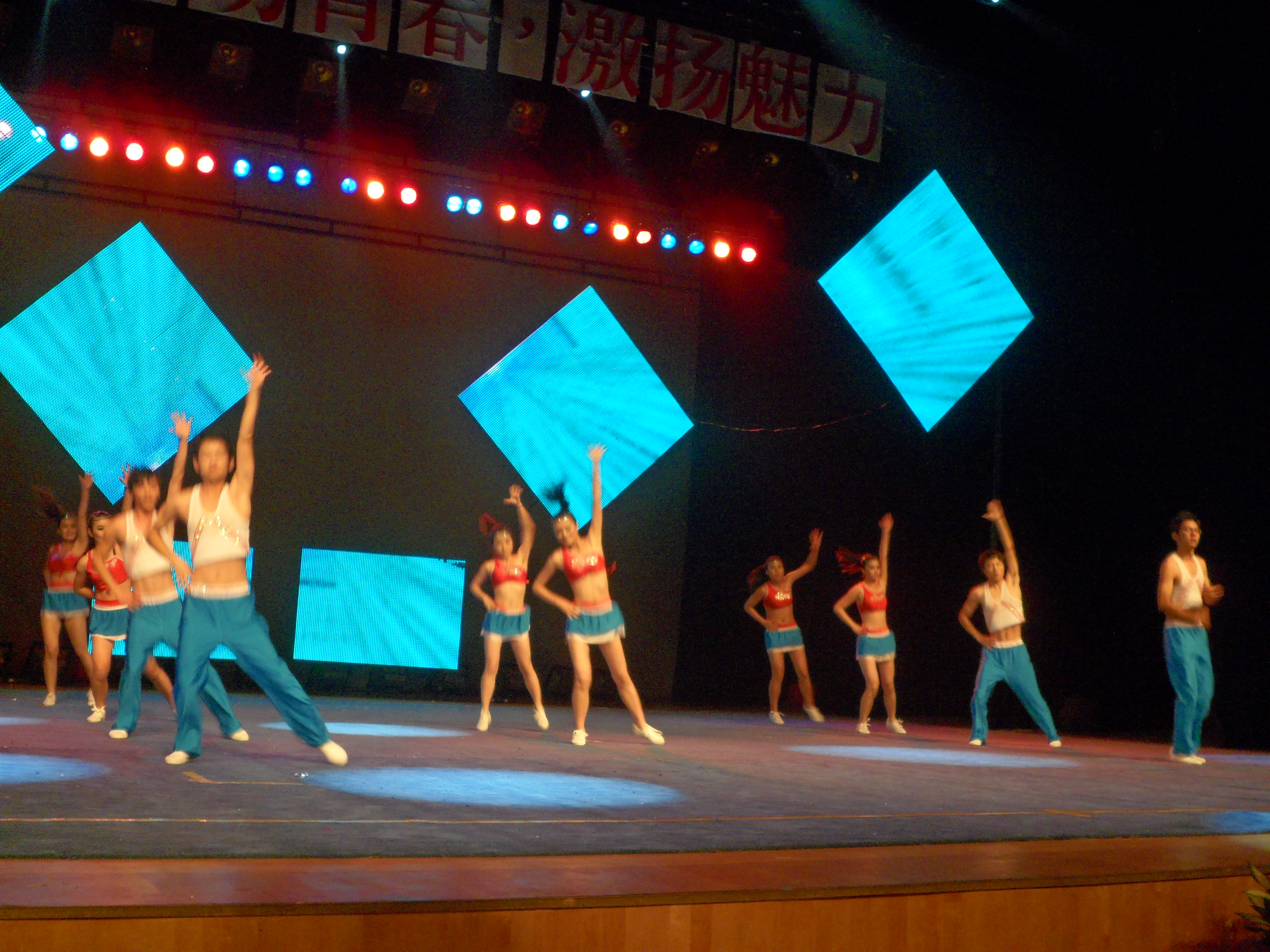 比赛开始前,杨志敏书记首先致开幕词,预祝每个代表队取的优异成绩。接着比赛在动感十足的开场秀:08建专带来的《创造奇迹》中开始了。此次比赛共有19个代表队参加,整场比赛都十分精彩,每位运动员都激情洋溢争取在舞台上发挥出自己最高的水平。400全讯白菜网代表队为大家带来的是《健力宝宝》,队员们动作到位、标准,赢得掌声一片,他们平时辛苦的训练没有白费,真是台上一分钟,台下十年功。我们看到每一位运动员都认真投入地在舞台上做着每一个动作,轻盈的跳跃优美的弧线,和最后高难度的亮相,大家都配合的十分默契。