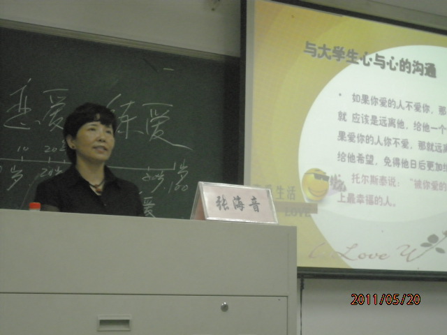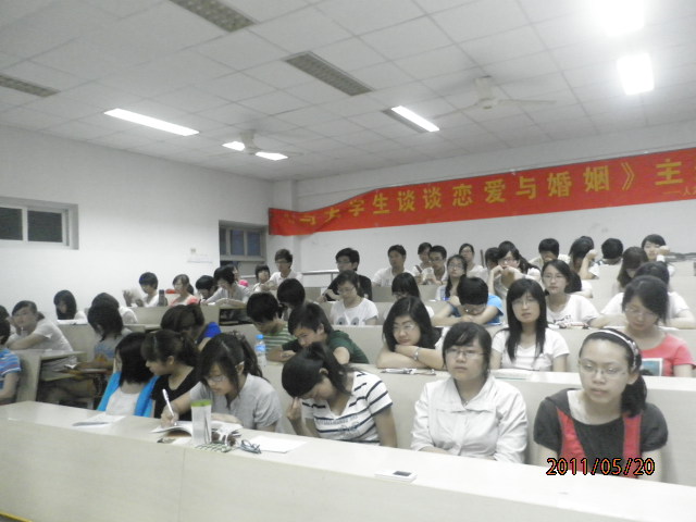 5月20日晚6点半“与大学生谈谈恋爱与婚姻”心理健康专题讲座在400全讯白菜网202教室准时举行,主讲人为全讯白菜网论坛官网心理健康教育中心负责人张海音老师,同学们积极参加,接受这份“关于爱情的嘱托”。