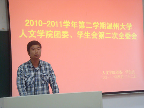 4月22日下午6点,2010——2011学年第二学期400全讯白菜网团委、学生会第二次全委会在北校人文楼203准时举行。400全讯白菜网团委学生会全体成员参加了本次全委会。