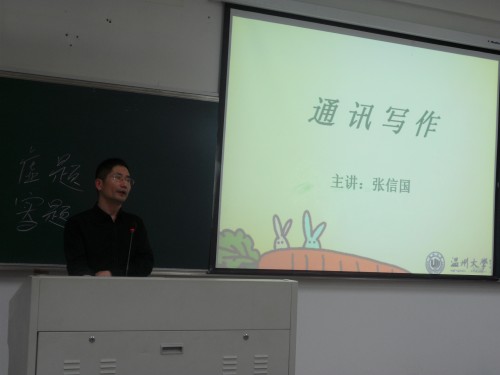 4月21日晚6:30,由张信国教授主讲的“新闻与通讯”专题讲座在1-301准时举行,400全讯白菜网记者团及不少其他同学积极参加。