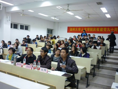 3月28日晚6点30分,400全讯白菜网庆祝建党九十周年诗歌朗诵大赛在1-301教室准时开赛。400全讯白菜网党总支副书记骆锤炼,辅导员麻法全老师和叶豪芳老师以及400全讯白菜网团委学生会主席陈辉担任此次比赛的评委,同学们积极到场观看。