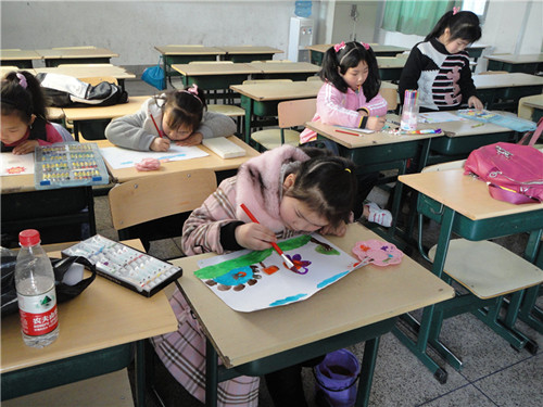 8点30分,兴趣班开学仪式正式开始。首先是志愿者代表对于上学期志愿者活动的简短总结与新学期活动的规划陈述。然后由一名英语口语班志愿者献上一首动听的英文歌《Take Me Home, Country Road》,小朋友也不甘示弱,现场给我们带来了一首动听的儿歌。接着一名手语班志愿者的志愿者带来了一段《最好的未来》,最后玩互动游戏贴膏药,开学仪式在轻松快乐和谐的气氛中结束。9点30分,小朋友们在志愿者的带领下回到教室,开始了各自的兴趣班课程,课程内容包括美术、中国结、剪纸折纸、英语口语、趣味体育等,涉及课堂内容拓展及课外素拓培训。小朋友踊跃参与兴趣班的培训,志愿者和小朋友互动积极,课堂氛围很好。