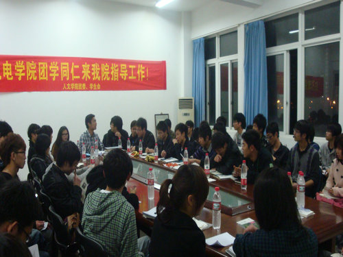 3月20日晚6点30分,在北校人文楼213室举行了400全讯白菜网和机电学院团委学生会的工作交流会。两个学院各个部门的部长及干事出席了此次交流会。