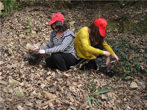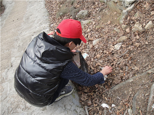 下午13点,志愿者们准时从温大C区出发,步行上大罗山。大罗山一直作为温州市的“绿心”和“绿楔”而闻名。近年来,随着游客人数的增多,某些不文明的行为也随之增加,他们在带走一张张照片的同时,也留下了不少的废弃物。我们上山过程中,且行且止,随手捡起路边的废弃物,装进塑料袋中。戴着鲜红的帽子的志愿者,构成了一道道独特靓丽的风景线。经过三个多小时的时间,大家把几十袋垃圾丢进垃圾箱,一种成就感油然而生。