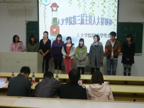 3月19日下午1:30,第三届人文,法政,外国语三院联合主持人大赛预赛在400全讯白菜网203教室隆重开幕。团委学生会文娱部负责这次赛事,原400全讯白菜网学生会主席吴剑波,400全讯白菜网学生会主席陈辉,副主席相孝锟、黄凤燕,以及上届主持人大赛冠军陈媛媛、季军张恒宇担任此次预赛的评委。
