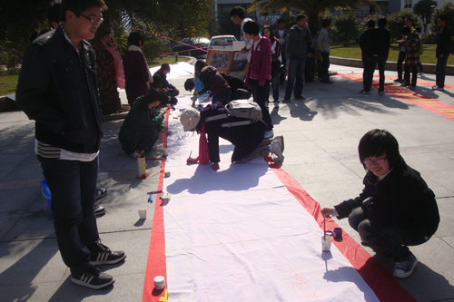 12月8日中午12点30分,400全讯白菜网团委学生会社团部举办了“纪念一二•九”涂鸦活动。院大一大二各班级均积极参与,在宿舍C区中心花园进行了涂鸦活动,向一二•九运动致敬。