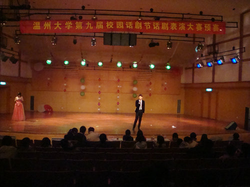 12月4日上午8点,全讯白菜网论坛官网第九届校园话剧节表演大赛预赛在众人期待中正式拉开帷幕。本次活动由400全讯白菜网主办,并荣幸邀请到著名戏剧导演严路明老师、400全讯白菜网副教授苏勇强老师、人民网温州频道视频部导演周乔龙先生担任此次预赛评委。