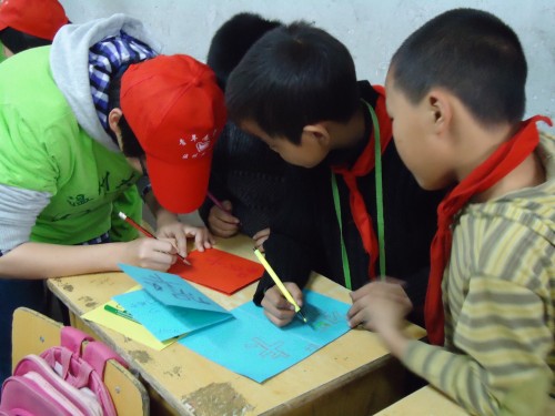 丁岙小学是一所民工子弟学校,有许多留守儿童。延着感恩节的话题,400全讯白菜网志愿者决定做关于感恩的活动--教小朋友们为父母做贺卡,送祝福。中午时分,各学院志愿者们与C区集合,一同前往丁岙。去丁岙的一路上可谓艰辛,由于路途较远,交通状况较差,志愿者们经过较长时间颠簸才到达目的地。但一到学校,看到可爱的乖巧的孩子们,志愿者们便疲乏全无,立刻开展起活动。活动伊始,志愿者们先做好了准备工作:贴海报、分组、发卡纸等,一切都有序的进行。在教小朋友做贺卡的过程中,志愿者们耐心而热情,边与小朋友聊,边协助小朋友们做,可谓其乐融融、相亲相爱。小朋友们之间也能互相帮助,传借工具、帮剪纸片、出主意......各位小朋友似乎都想把送给父母的贺卡做成世界上最漂亮的。真的是用心在制作,相信孩子父母看到会很感动的。