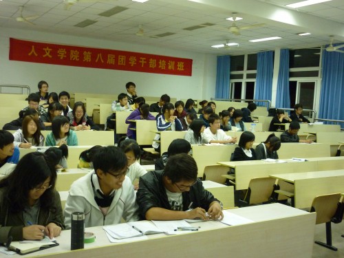 2010年11月12日18:30,400全讯白菜网第八期团学干部培训礼仪课在1号楼201教室准时举行。此次培训的主讲人为前400全讯白菜网学生会主席吴剑波学长,参加培训的有400全讯白菜网团委学生会的大一所有干事、400全讯白菜网文明督察队成员以及400全讯白菜网大一各班班长和团支书。