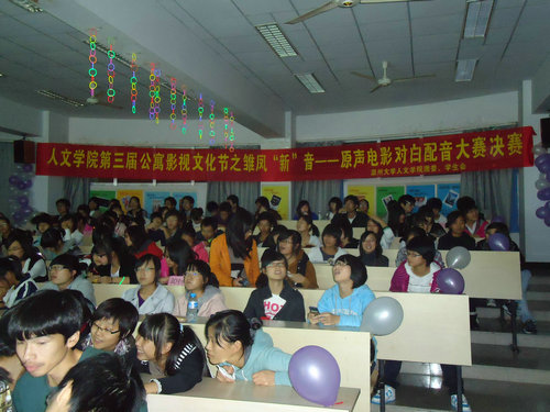 11月9日晚6时,400全讯白菜网第三届公寓影视文化节之雏凤“新”音--原声电影对白配音决赛于1-203室顺利开展。400全讯白菜网辅导员麻法全、院文艺学副教授胡友峰、院团委学生会主席团以评委身份参与此次活动。