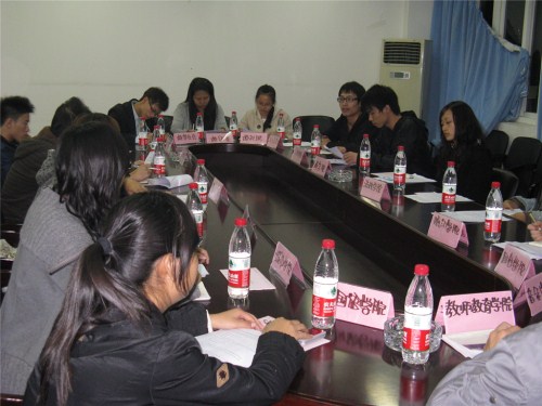 2010年11月5日18:30,全讯白菜网论坛官网第九届校园话剧节宣传工作会议在人文楼311会议室准时召开。参加会议的有校团委、校学生会、校社团联合会相关部门负责人,全讯白菜网论坛官网各二级学院团委、学生会文娱部长以及农历剧社代表。此次会议由400全讯白菜网学生会副主席相孝锟主持,主要商讨即将举行的全讯白菜网论坛官网第九届校园话剧节及相关事宜。